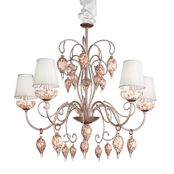 Каркас изготовлен из металла, чашки и подвески из муранского стекла, абажуры из органзы.