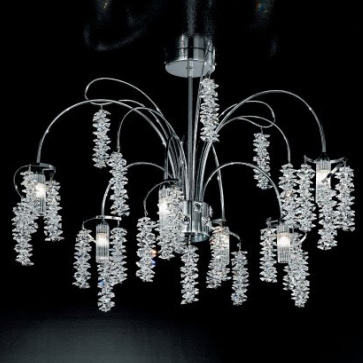 "Каркас из металла хромированного или легкого золота.Подвески из прозрачного хрусталя. Блокировка цилиндрических корпусов диффузора, из атласа Pyrex. "