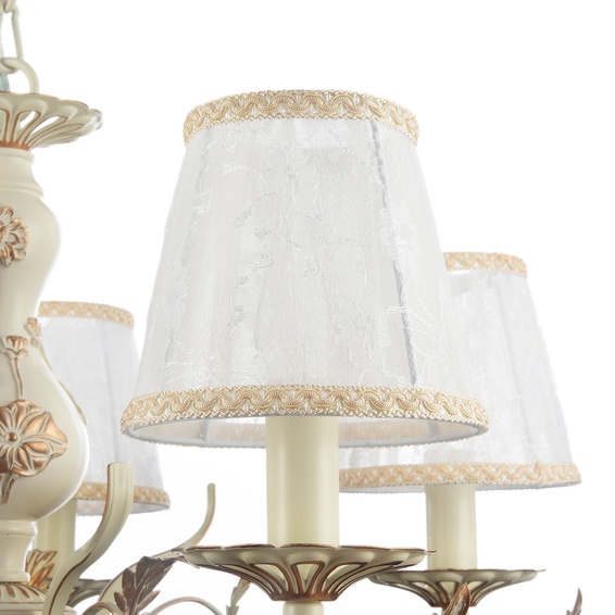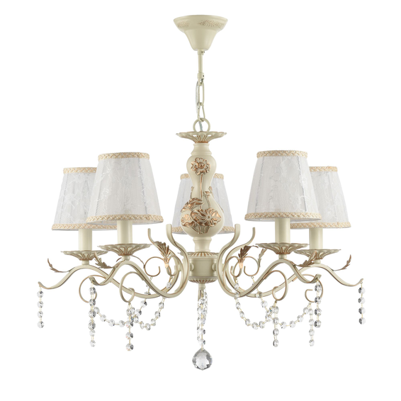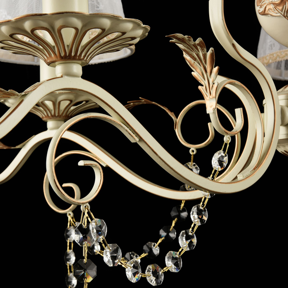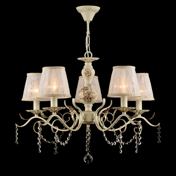Арматура – из металла и полирезина, абажуры – из органзы. Главное украшение светильников – декоративные кристаллы