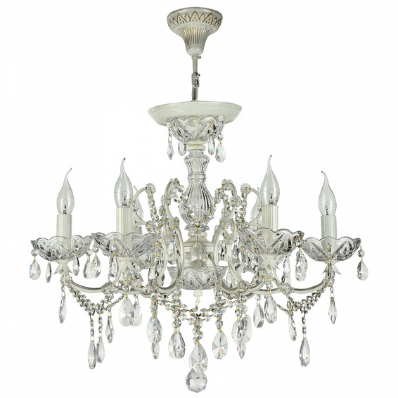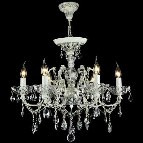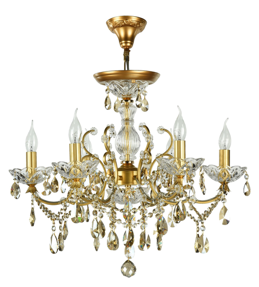 Арматура из металла. Большое количество хрустальных подвесок различных огранок. Модель комплектуется лампочками Voltega и средством для чистки хрусталя. Дополнительный год гарантии. Модель представлена в 2-х цветах. Цвет Золото - Артикул DIA004-06-G