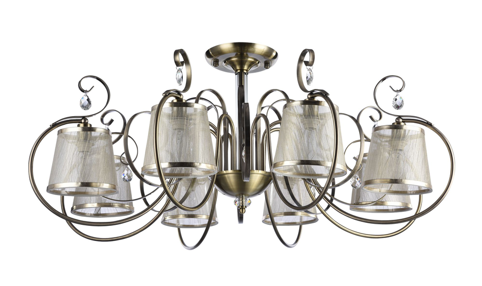 Арматура цвета «античное серебро», абажуры из органзы на ПВХ. Люстры подходят для помещений с невысокими потолками благодаря конструкции «2 в 1». Дизайн изделий дополнен декоративными подвесками. Модель представлена в 2-х цветах. Цвет Бронза - Артикул FR2020-CL-08-BZ