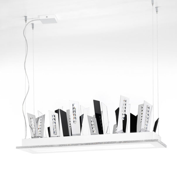 Каркас изготовлен из металла, декоративные элементы - кристаллы Сваровски. Рассеиватель - из сатинированного стекла. Доступен в отделке хром или белый глянцевый.