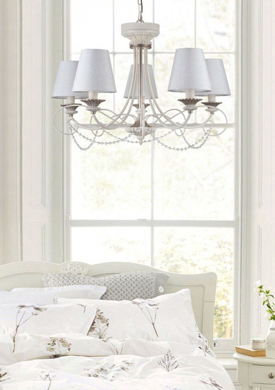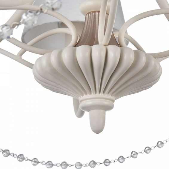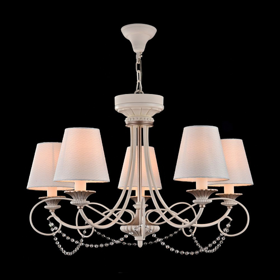 Арматура из металла. Подвески из стеклянных бусин. Абажур из ПВХ покрыт белой фактурной тканью.