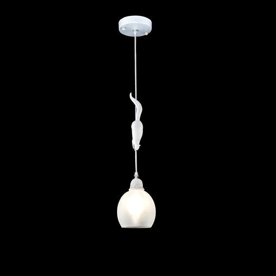 Арматура сделана из металла, окрашенного в белый цвет, фигурки белок выполнены из керамики, плафоны из белого матового стекла.