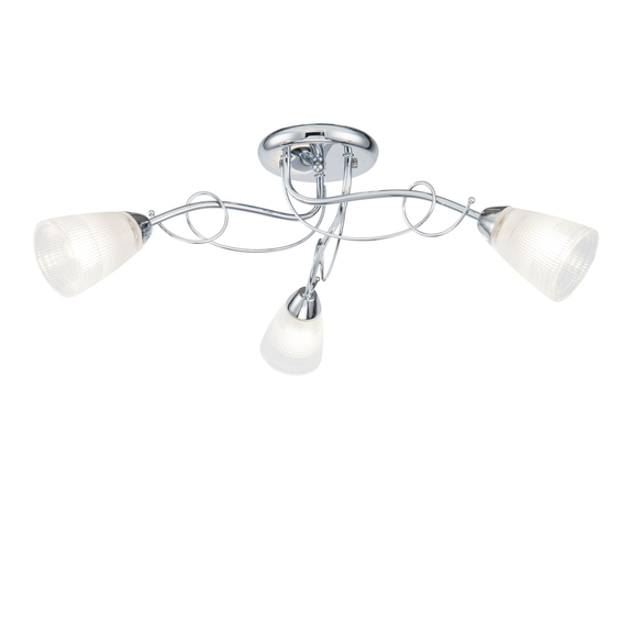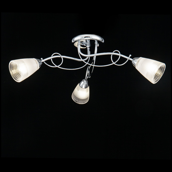 Блестящая арматура цвета «хром» сделана из металла, плафоны сделаны из прозрачного рифленого стекла.