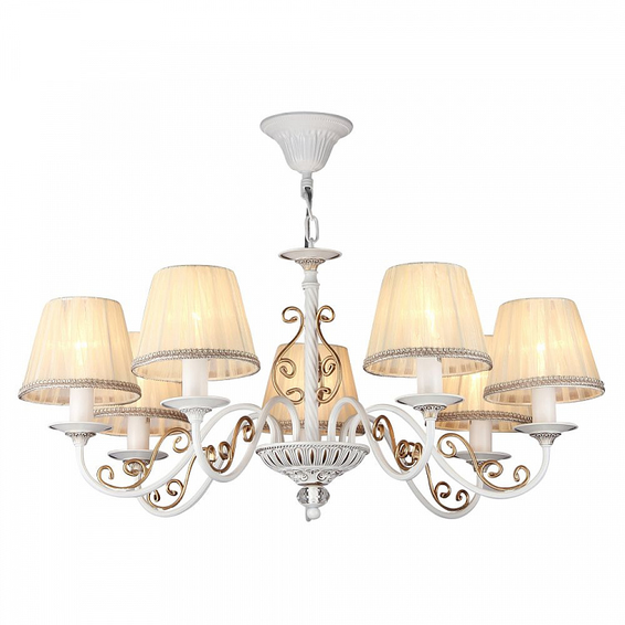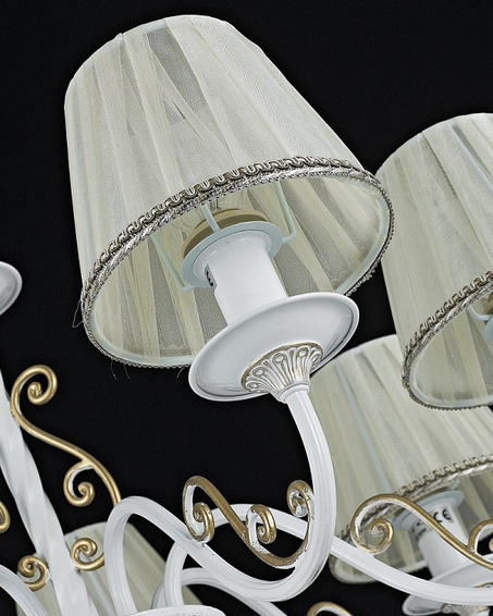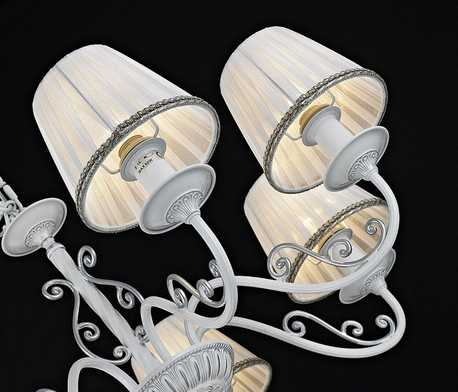 Арматура из металла. Абажуры из плиссированного атласа 2-х цветов. Цвет абажура Жемчужный белый - Артикул ARM290-07-W
