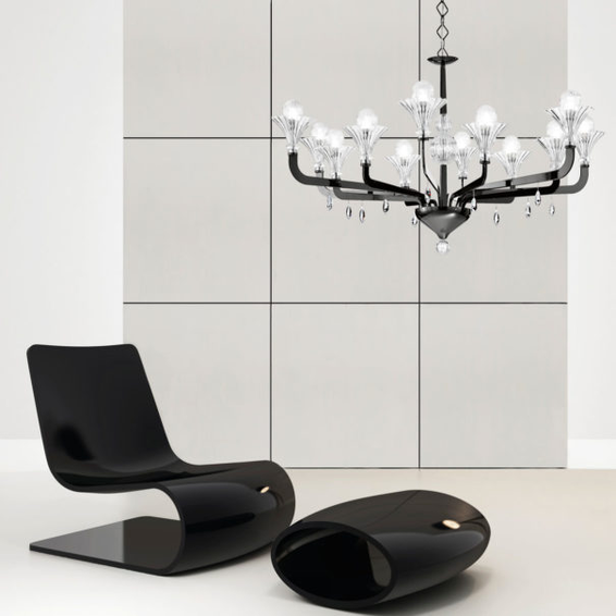 Каркас изготовлен из металла, детали и плафоны из стекла Pyrex. Декоративные элементы Swarovski Crystals. Доступен в цвете "ржавчина", светлое золото, хром, черный никель.