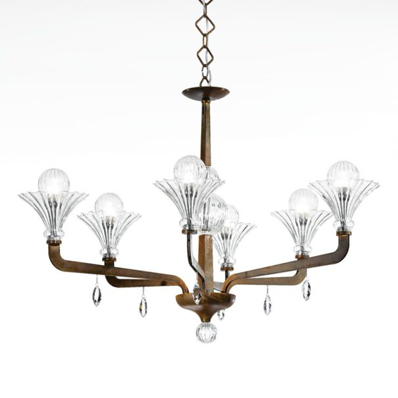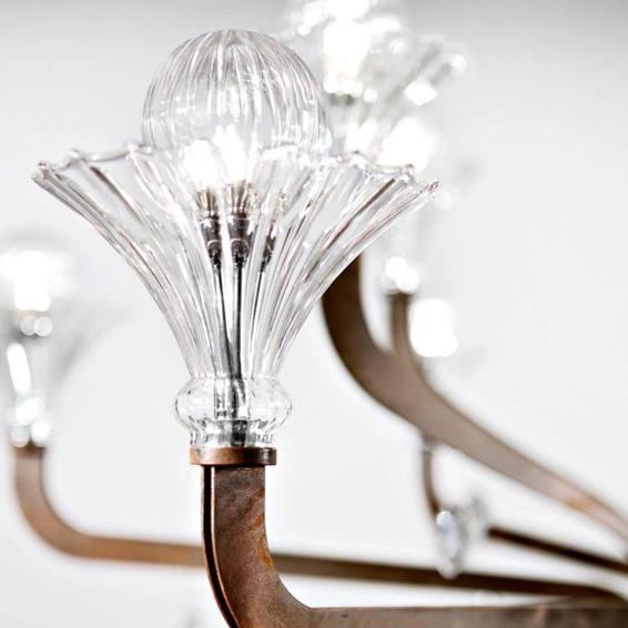 Каркас изготовлен из металла, детали и плафоны из стекла Pyrex. Декоративные элементы Swarovski Crystals. Доступен в цвете "ржавчина", светлое золото, хром, черный никель.