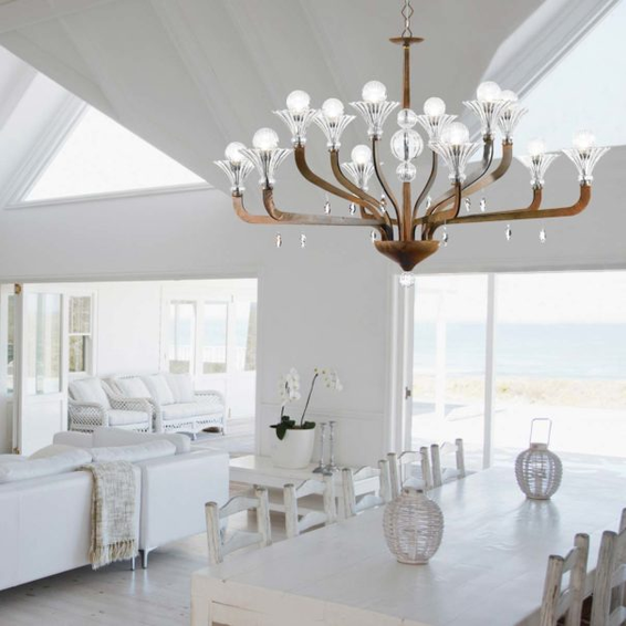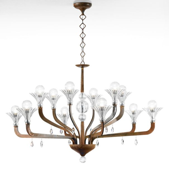 Каркас изготовлен из металла, детали и плафоны из стекла Pyrex. Декоративные элементы Swarovski Crystals. Доступен в цвете "ржавчина", светлое золото, хром, черный никель.