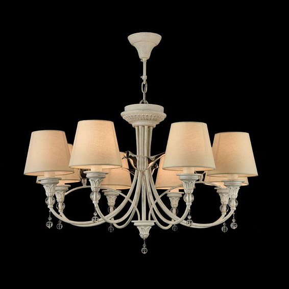 Арматура из металла. Декоративные элементы в виде птичек из прозрачного стекла. Абажур из ПВХ покрыт бежевой тканью.