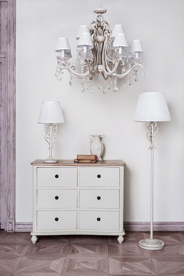 Арматура из металла. Абажур из плиссированного атласа. Подвески из *хрусталя.