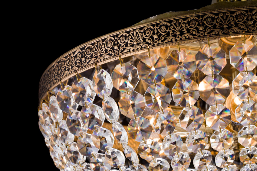 Арматура из металла. Латунная лента с чернением. Подвески из *хрусталя.