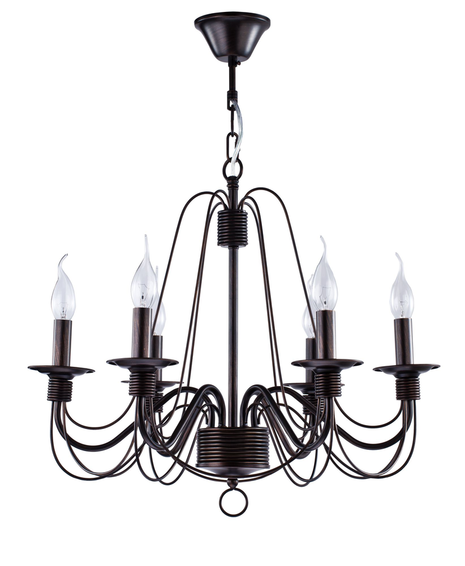 Подсвечники и основание для крепления рожков выполнены в виде катушек, обвитых веревкой. Серия имеет два цвета - белый с золотом и коричневый (Артикул FR2046-PL-06-BR)