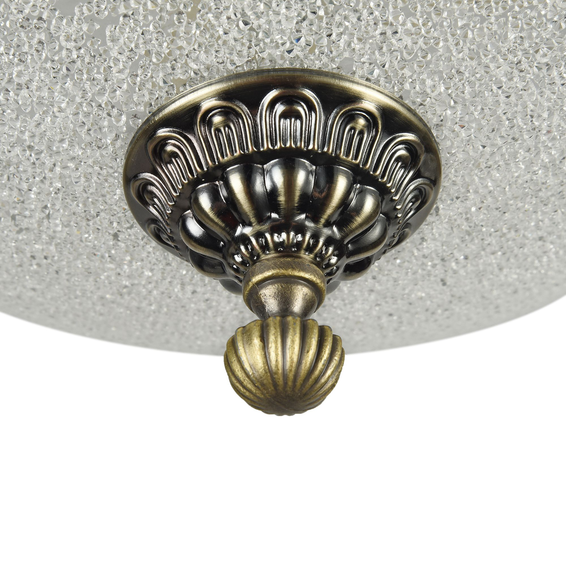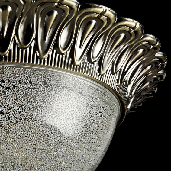 В дизайне светильников использованы такие приемы, как использование бронзы для окраски арматуры, декоративная позолота на арматуре, а также эффект «битого» стекла у плафонов.