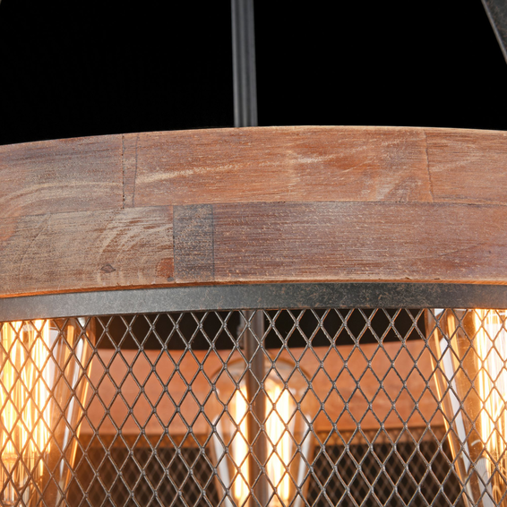 Арматура изделий серии из металла и дерева, плафоны декорированы черной металлической сеткой.