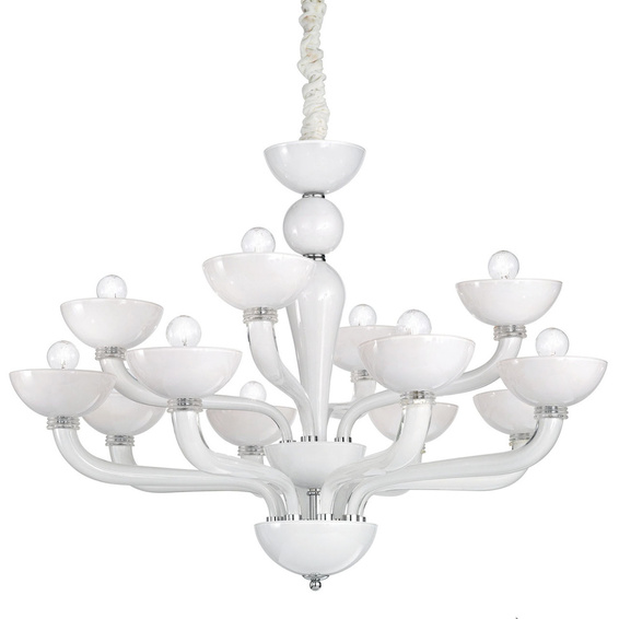 Подвесная люстра Ideal Lux Casanova SP12 Bianco 094052 без плафонов осветит помещение площадью 26.7 кв. м. Производитель Ideal Lux рекомендует использовать для устройства лампы накаливания с цоколем E14 и мощностью 40 W. Прибор произведен с использованием материалов: стекло и металл и может использоваться для натяжного потолка.