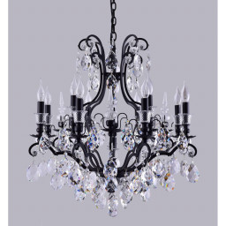 Арматура светильника сделана из металла,покрашена в черный цвет.Прозрачные хрустальные подвески и вставки.