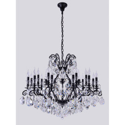 Арматура светильника сделана из металла,покрашена в черный цвет.Прозрачные хрустальные подвески и вставки.