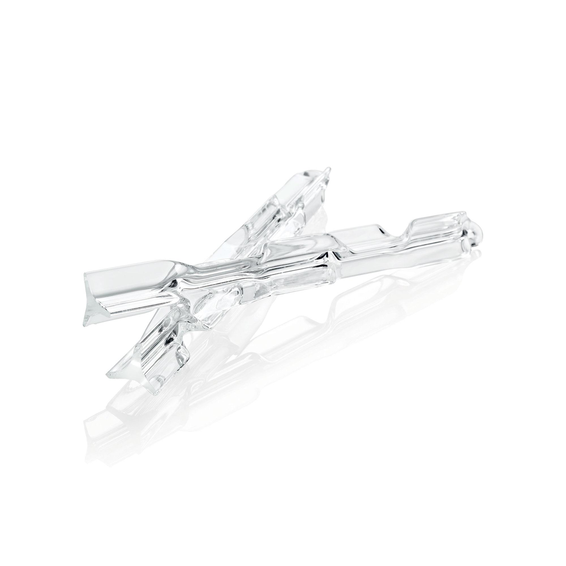 Круглая арматура из хромированного металла. Декоративные элементы из трубчатого стекла выгнуты вручную и закреплены зажимами к металлическим тросикам.