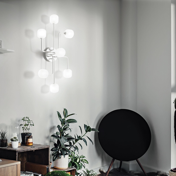 Основа и рожки из металла покрыта матовой краской. Рассеиватели из прозрачного дутого стекла пескоструйной обработки.
