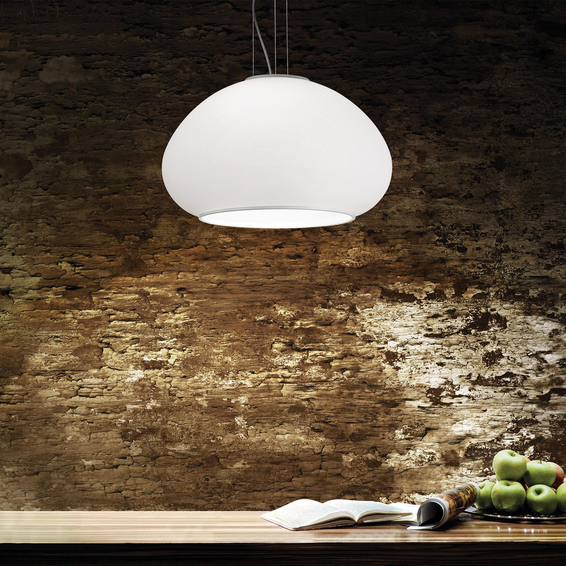 Арматура и кольцо на нижнем ободе из металла покрыты белой матовой краской. Рассеиватель из белого дутого матового стекла.