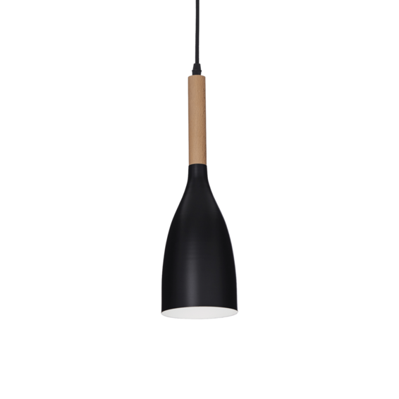 Потолочная чаша и рассеиватель из металла окрашенного в белый или чёрный матовый цвет с деревянным элементом. Провод из ткани.