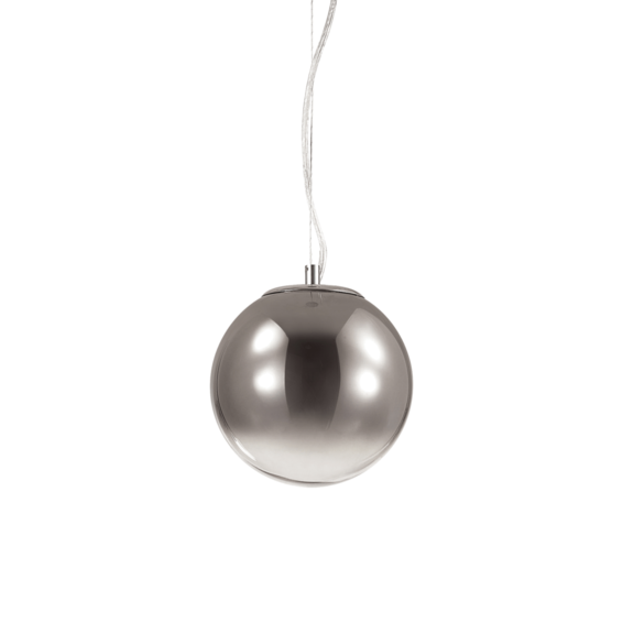 Арматура из хромированного металла. Рассеиватель шарообразный из дутого прозрачного хромированного стекла с растеканием к низу.