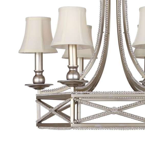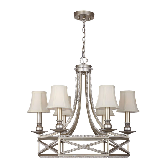 Каркас светильника из металла, окрашен в цвет французского серебра. Материал плафона белый хлопок. Доступен в цвете золотого фольгирования код- 1922-6P.