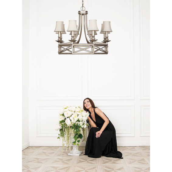 Каркас светильника из металла, окрашен в цвет французского серебра. Материал плафона белый хлопок.Доступен в цвете золотого фольгирования код- 1922-8P.