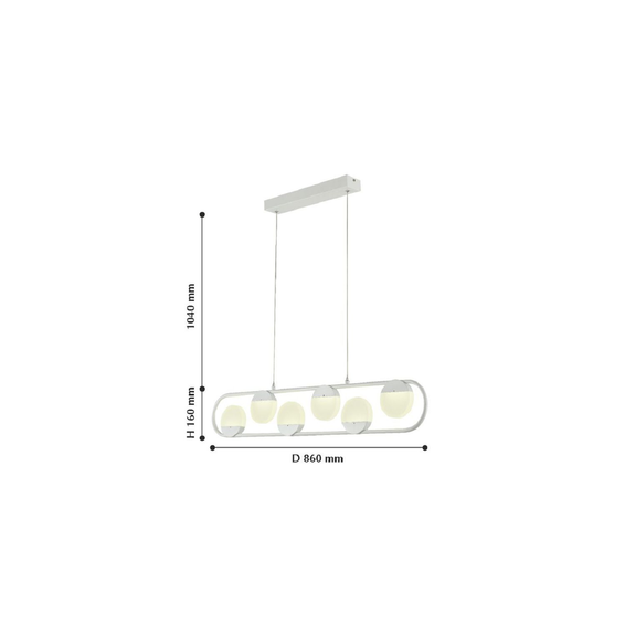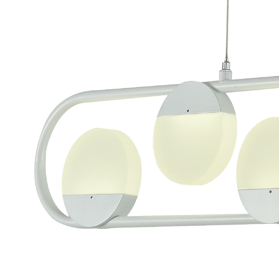 Арматура изготовлена из металла, окрашенного в белый матовый цвет, плафоны из белого матового акрила, регулируется по высоте при помощи тросов.