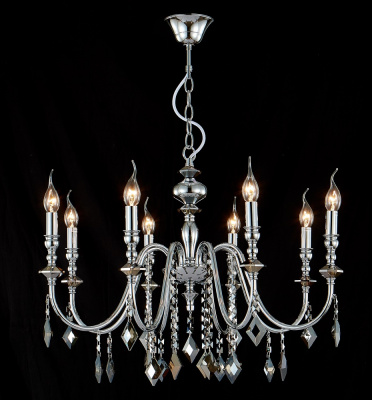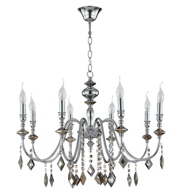 Арматура светильника сделана из металла,с хромированным покрытием.Декоративные подвески из хрусталя,дымчатого цвета.Доступен в золоте,код-0951/308 SP8.