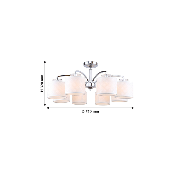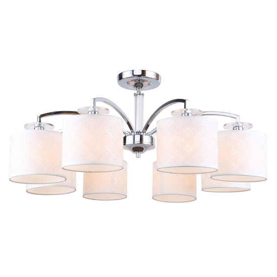 Каркас светильника из металла,хромированный,декорирован стеклянными блюдцами и рифленным цилиндром.Плафоны из белого стекла.
