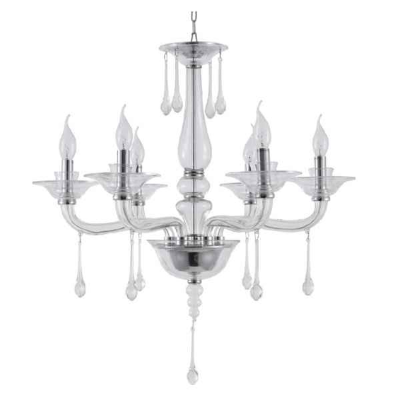 Арматура светильника сделана из металла,с хромированным покрытием.Корпус и подвесные детали из прозрачного стекла.