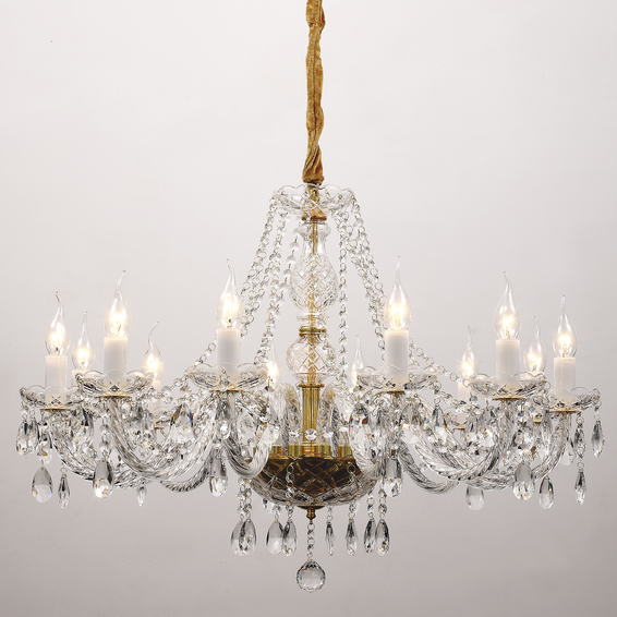 Арматура из металла золотого цвета,стеклянные рожки и блюдца из хрусталя высшего качества, прозрачного цвета.