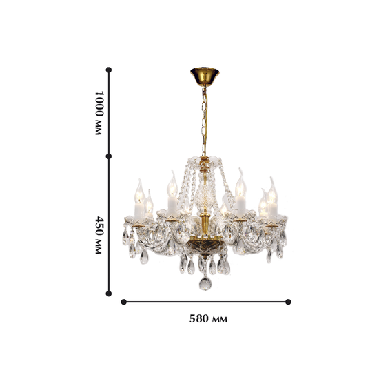 Арматура из металла золотого цвета,стеклянные рожки и блюдца из хрусталя высшего качества, прозрачного цвета.