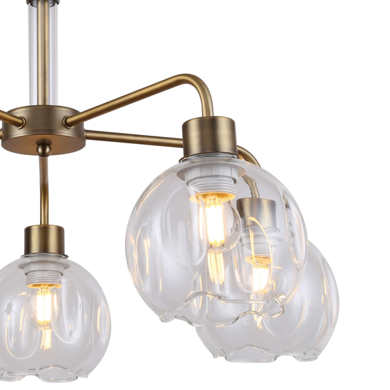 Коллекция MONTO в современном стиле выполнена в цвете античной бронзы. Выдувные плафоны из прозрачного стекла с эффектом деформированных пузырей.