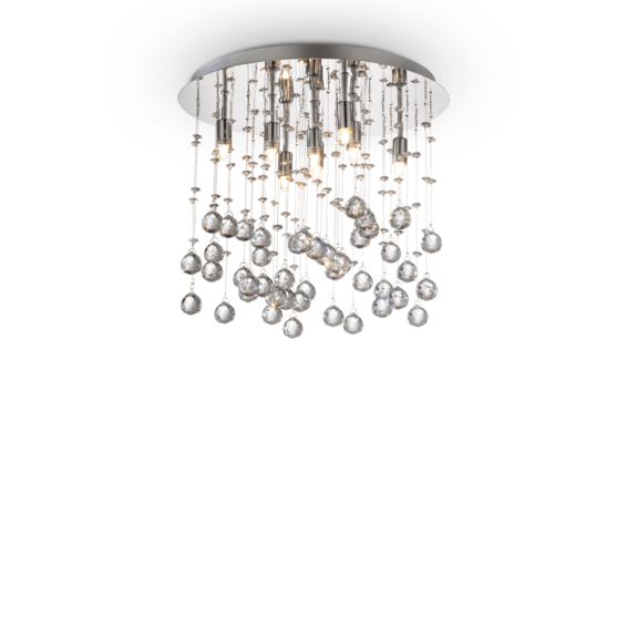 Арматура из металла хромированной, золотистой или белой матовой краски. Подвески с восьмиугольными хрусталиками и шарами из хрусталя с фацетом.