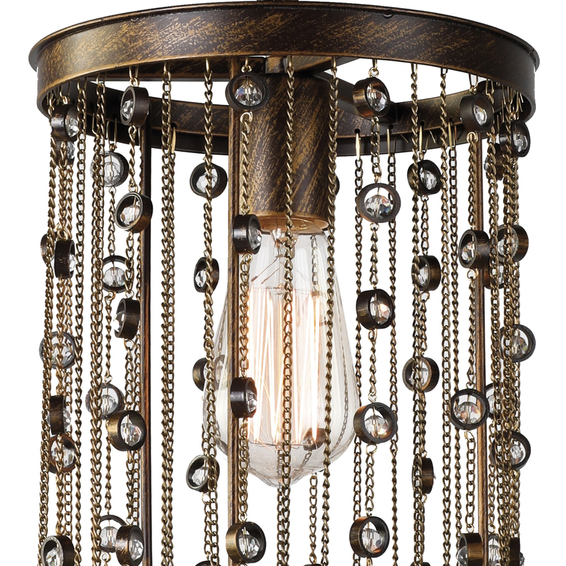 Каркас изготовлен из металла, окрашенного в цвет золотистого кофе, цепочки в цвете золота, хрустальные элементы.