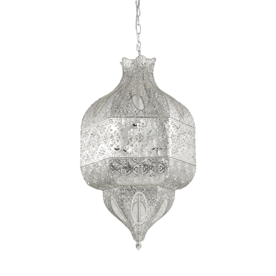 Арматура и рассеиватель из ажурного металла с покрытием под серебро.
