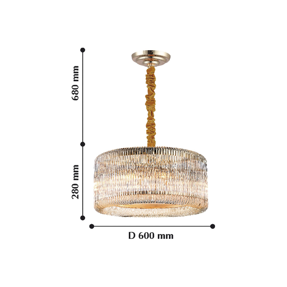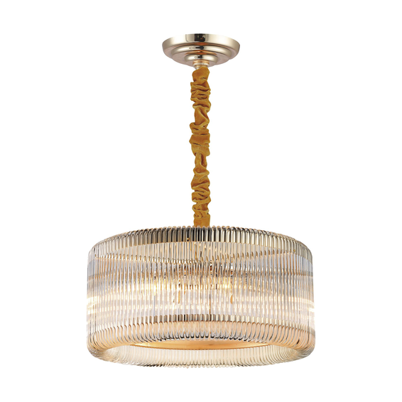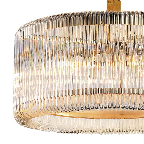Металлический каркас покрыт гальваникой золотого цвета, декоративные элементы выполнены из тонких изогнутых стеклянных трубочек.