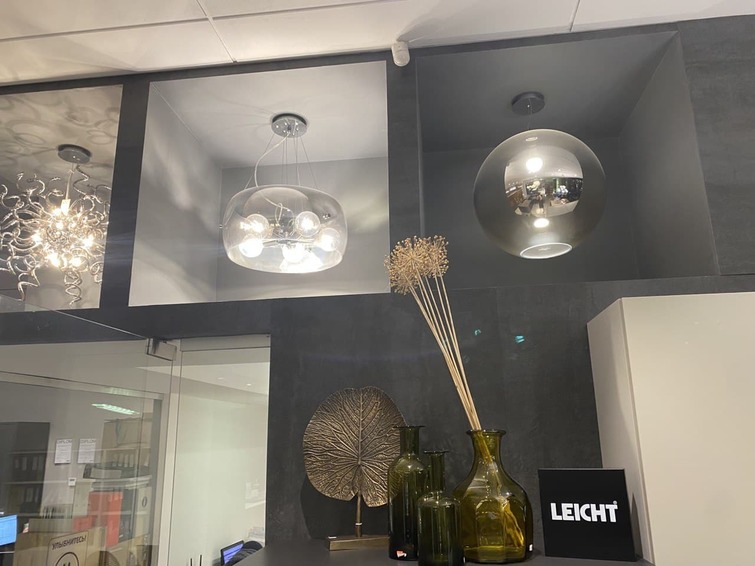 Рассеиватель из дутого стекла. Доступен в сером, медовом, прозрачного или нюансно-хромированном покрытии. Лампочка в моделе 052793, скрыта под белым дутым матовым стеклом. Ø 500 x H min 550 / max 2640 mm E27 max 1 x 60W IP20