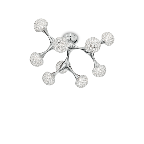 Арматура изготовлена из хромированного металла. Рассеиватели состоят из металлических колец с хромированным покрытием и восьмиугольными хрусталиками внутри.