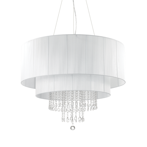 Арамтура в хроме. Рассеиватель из материала ПВХ с металлическим оттенком и нитями. Подвески из хрусталя с фацетом.