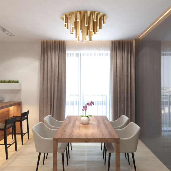Каркас светильника из металла, окрашен в солнечно-золотой цвет.