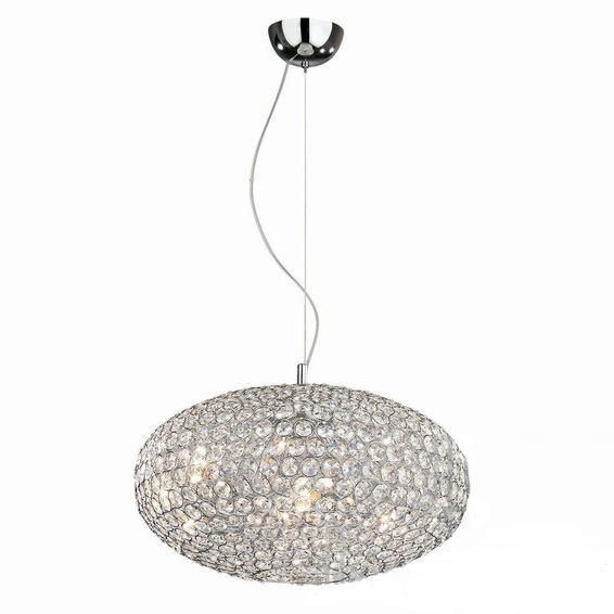 Рассеиватель состоит из металлических колец хромированного покрытия с восьмиугольными хрусталиками внутри. Подвесы со стальными тросиками.