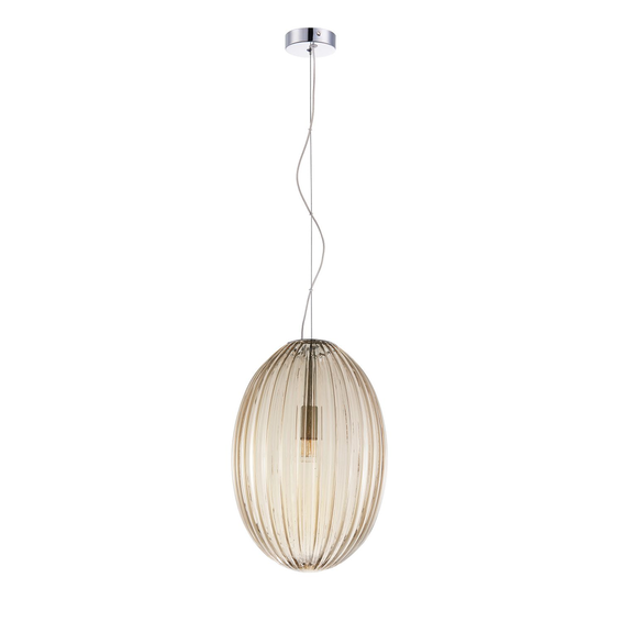 Выдувное стекло цвета шампанского в форме вытянутого эллипса, каркас из металла цвета хром.