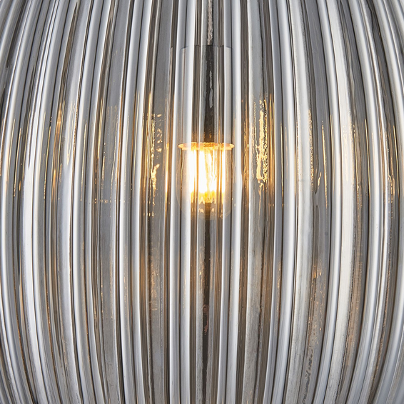 Выдувное стекло цвета шампанского в форме вытянутого эллипса, каркас из металла цвета хром. Доступен с цветом стекла серого код- 2181-1P и прозрачного стекла код- 2183-1P.