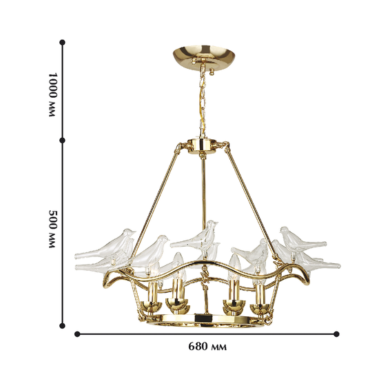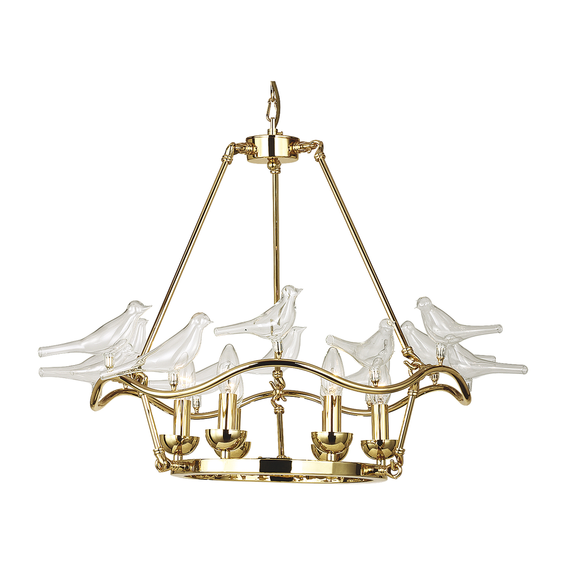 Арматура и крепежные детали из металла золотого цвета, декоративные птички из выдувного стекла.Доступен в белом цвете код- 1751-6P.