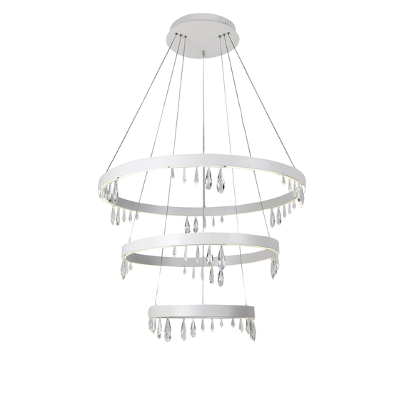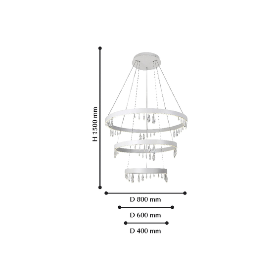 Корпус светильника и крепежные детали из металла белого цвета.Подвески из хрусталя разного размера и формы.