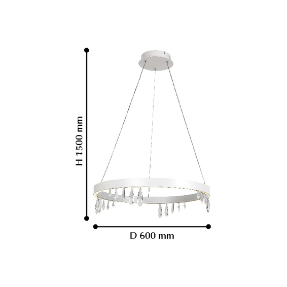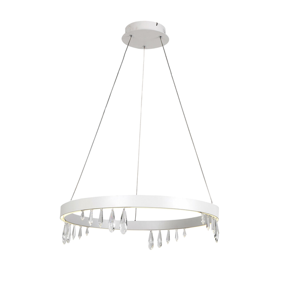 Корпус светильника и крепежные детали из металла белого цвета.Подвески из хрусталя разного размера и формы.